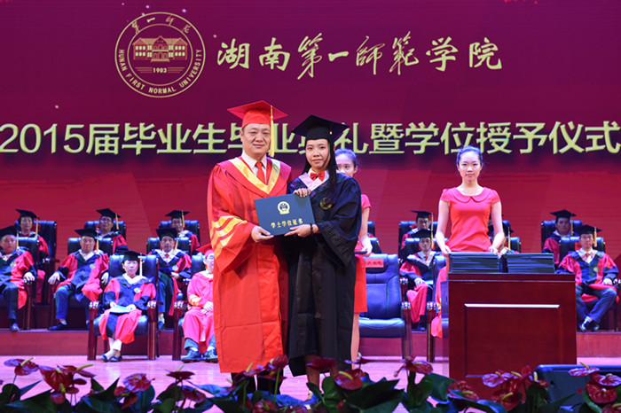 仪式上,主持人宣读了湖南省教育厅和学校的表彰决定,吕靓等49名同学被评为2015届省级优秀本科毕业生,何亚玲等246名同学被评为2015届校级优秀本科毕业生。