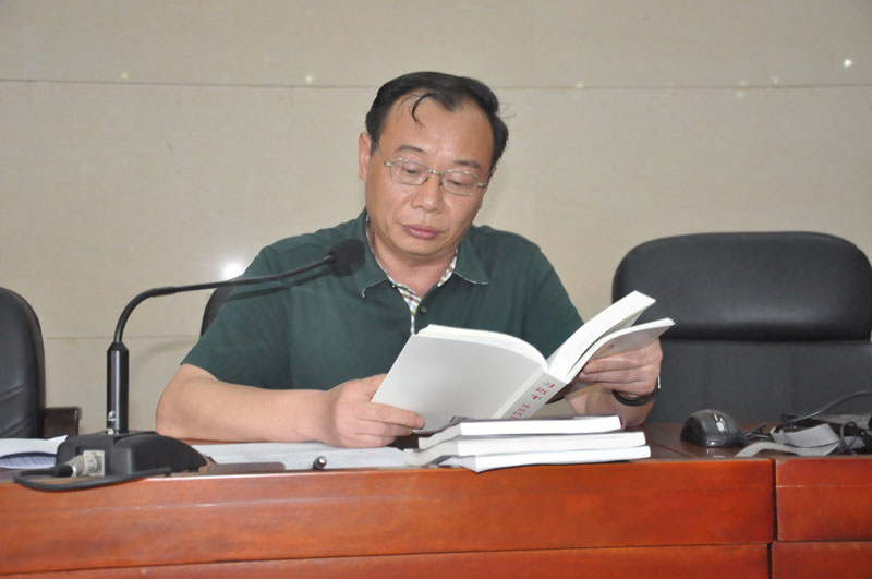 校党委委员、副校长刘志敏组织全体与会人员共同学习了《习近平谈治国理政》、《“三严三实”专题教育学习读本》第一、二讲的主要内容。学习内容包括:习近平总书记2014年3月9日在参加全国十二届人民代表大会安徽代表团审议时的讲话,要求树立和发扬“三严三实”的作风;习近平总书记在2014年4月28日参加全国劳动模范代表座谈会时的讲话,指出实干才能成就梦想;2013年12月26日,习近平总书记在纪念毛泽东诞辰120周年座谈会上的讲话,并强调指出坚持和运用好毛泽东思想活的灵魂。“三严三实”第一讲重点学习了“三严三实”要求的重大意义、基本内容、“三严”与“三实”的辩证关系;第二讲重点针对党员领导干部践行“三严三实”提出了明确要求,“三严三实”是广大党员干部特别是各级领导干部的为政之道、成事之要、做人之基,是新时期加强作风建设的行动指南,是新形势下党员干部的行为准则,是全面从严治党的重要遵循,是实现“两个一百年”奋斗目标和中华民族伟大复兴中国梦的强大力量,为此,各级领导干部要切实增强践行“三严三实”要求的思想自觉和行动自觉。