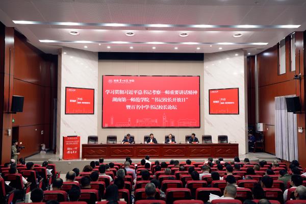 罗成翼指出,3月18日,习近平总书记到湖南一师考察并发表重要讲话,给了我们极强的思想指引、精神鼓舞和奋斗感召。学校举办“书记校长开放日”暨百名中学书记校长论坛,就是要落实总书记“第一师范要办好,还要办好各级各类学校”的殷殷嘱托,加强与各级各类学校的合作交流,推进协同育人,实现优势互补,不断提高人才培养质量。我们愿与全省各中学携手一道,以更强的使命感和责任感把学校办好、把学生培养好、办好人民满意的教育,共同助力教育强省建设,为实现“三高四新”美好蓝图,推进中国式现代化培养一批批栋梁之材。