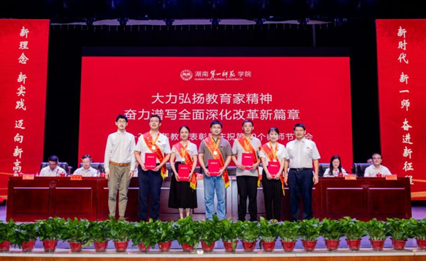 9月6日下午,我校在东方红校区田汉剧场隆重举行2024年教师表彰暨庆祝第40个教师节大会。校党委书记罗成翼发表讲话,校长胡穗主持大会。全体在家校领导、党委委员,退居二线的老领导,全体教职员工,离退休老同志代表,一、二附小教师代表及部分学生代表参加大会。