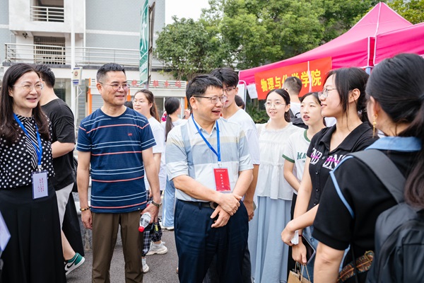 9月7日上午,校领导一行先后来到两个校区的迎新点,深入迎新一线指导工作,每到一处都与迎新工作人员、新生及家长亲切交谈。