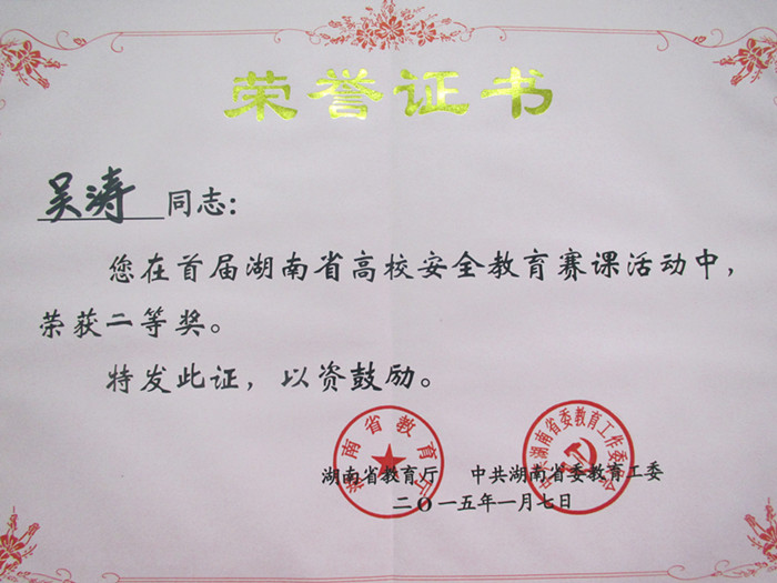 我校吴涛老师主讲的《高校安全教育一点通之学生防骗》,在湖南省首届高校安全教育赛课活动中获得二等奖。