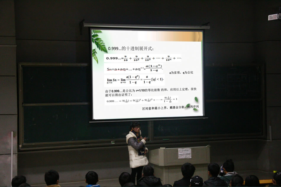 12月22日晚,一场别开生面的学生课堂教学实践活动拉开了帷幕,数学与应用数学专业六年制本科免费师范生以经典数学问题为选题,通过图文并茂的课件和生动的解读,展示了他们“课前五分钟实践”活动的研究与实践成果。“课前五分钟实践”活动是今年2月份以来,数学院在六年制本科免费师范生的《数学分析》课程里研究设计的课堂教学改革实践,学生利用上课前五分钟进行实践活动,每次按照学生学号由一位学生主讲,教师随后进行点评,这是对课堂教学模式改革的新尝试。