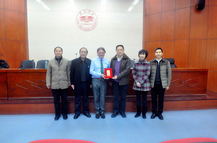 Mark Schofield教授为我校“海外名师”项目教育学学科专家,本次来我校将进行为期10天的系列讲学活动。讲座开始前,举行了简短的欢迎与受聘仪式,刘鸿翔副校长主持,童小娇副校长介绍马克教授所取得的学术成就,肖湘愚校长代表学校聘任马克教授为我校“客座教授”。