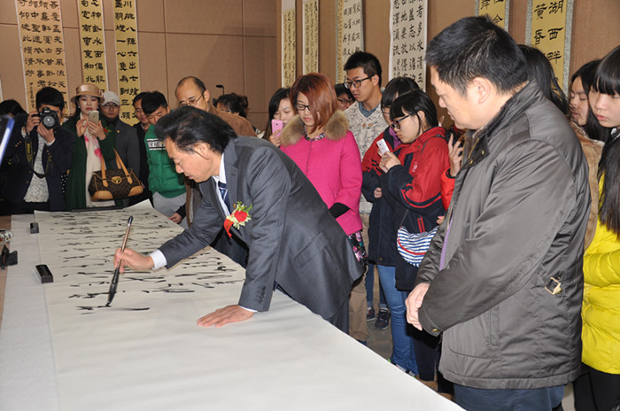 为纪念毛泽东主席诞辰121周年,深切缅怀伟人,弘扬毛泽东思想,传承心忧天下、敢为人先的湖湘精神,12月14日上午,著名毛体书法家、诗人、广东惠州市文联主席安想珍先生专程来我校捐赠自己精心创作的毛体书法作品,并与我校美术与艺术设计学院的书法老师开展交流笔会。