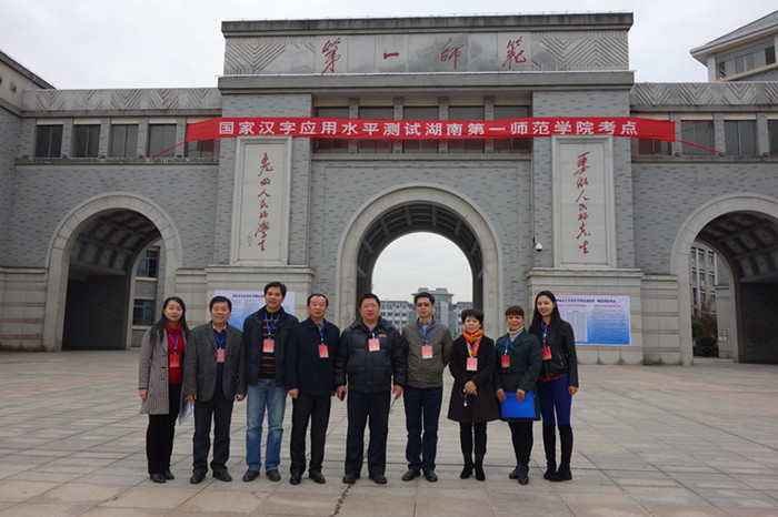12月6日上午,国家语委普通话与文字应用培训测试中心副主任吕同舟、湖南省语委办主任黄智勇、省语言文字培训测试中心主任杨颖一行三人来我校巡视国家汉字应用水平测试工作,副校长刘志敏率相关部门负责人陪同视察。