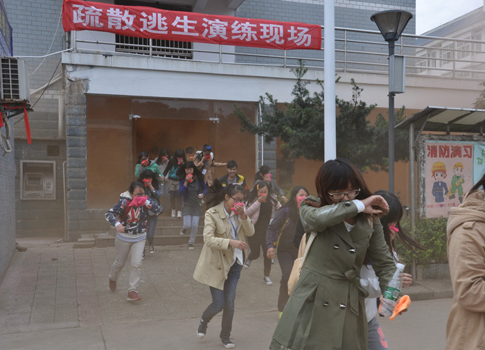 为了强化消防安全教育效果,提高灭火救援水平和应急处置能力,保卫处还精心组织了一场逃生疏散演练。伴随着滚滚的浓烟和急促的消防警报声,学生们捂着鼻子快速有序地从东方红校区学生公寓4栋撤出,每个保卫人员根据各自职责,有条不紊的展开行动,火险很快被控制,全楼学生得到安全疏散。演练活动锻炼了应急处置队伍,同时也让参演学生对如何从火场逃生有了更深的感性认识。