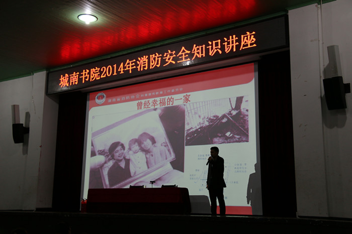 东方红校区音乐剧场和城南书院校区大礼堂里座无虚席,来自长沙市普消宣传指导中心的消防安全知识宣讲员为大家带来了精彩的消防安全专题讲座。他们通过生动翔实的案例讲解,让在座的2014级新生、辅导员、物业人员及保卫人员进一步了解了火灾的危害性、防范的重要性以及在险情中的应对措施。针对学校的特点,教员还重点介绍了学生宿舍火灾隐患、火灾防护、火灾现场如何保全生命、自救逃生的方法,并特别指出火灾逃生最重要的是要保持冷静、掌握技巧。