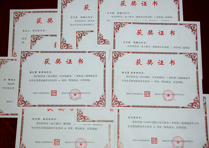 近日,第三届“湖南省中小学生芙蓉创新奖”颁奖结束。我校第二附属小学在第三届“湖南省中小学生芙蓉创新奖” 荣获7个奖项:学生个人荣获一等奖1个、二等奖2个、三等奖3个;二附小荣获“学校和教育机构奖”。