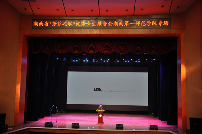 接下来,我校7位优秀女生和湖南科技大学的3位优秀女生依次登台报告自己在大学期间努力逐梦的经历。我校外语系学生尹畅,热爱音乐、热爱公益,在追逐音乐梦、演讲梦的道路上,一路艰辛,一路坎坷,靠着自己顽强的毅力坚定走来,曾获湖南省“碧泉·湘筝杯”古筝独奏大赛二等奖、湖南省“同心圆杯”葫芦丝巴乌独奏大赛金奖、湖南省“人生信仰·我的中国梦”主题演讲比赛一等奖、“外研社杯”全国英语写作大赛二等奖、校十佳“星”青年等一系列奖项与荣誉。美术系学生张巧玉,一名热心公益、默默奉献的90后志愿者,恪守自己的理想信念,充分发挥自己的专业特长,多年如一日为社会弱势群体服务,并带动身边所有的人一起加入志愿者服务团队,成功地筑起一条爱心之路,她的先进事迹曾先后被新华网湖南频道、湖南卫视、湖南经视、长沙晚报等多家媒体报道,在社会上引起很大的反响。信息科学与工程系学生唐蓉琪,一个酷爱篮球与科技发明的女孩,入校以来与绘画结缘,曾获得全国教师委员会儿童诗文配图大赛二等奖、长沙市剪纸大赛三等奖、校园板报设计特等奖、手抄报设计特等奖、简笔画大赛一等奖等一系列奖项,现已发表自编的漫画册《海的誓言》、《不存在的犯罪》、《异度时空界》等,《冬日恋歌》、《麓山高校篮球部》也在积极地绘制分镜中,十九年前的一颗小种子,一步步成长壮大,一个独一无二的女孩,从稚嫩走向成熟,不久的将来一定是一名优秀的小学教育技术教师。外语系学生许梦榕,放弃能出国留学的机会,坚守自己学生会干部的梦想,一路独立行走,曾多次荣获校级奖学金、专业演讲比赛、外语歌曲比赛一等奖等奖项,主持大学生创新项目获省级立项,多次被评为校优秀学生干部、三好学生等。教育科学系学生方圆秀美,成绩优异,志向远大,一个为自己主持人梦想追逐的女孩,2012年荣获芒果Radio优秀实习主播,2013年荣获湖南省第二届高校主持人大赛全省第二名、河西赛区第一名,2014年任中国国际广播电台环球旅游实习主播。数学系学生李瑶,和同寝室的同学组成了一个学习型团队,四位同学思想进步,活泼开朗,成绩优异,今年全部考上研究生,是学校的明星寝室、明星团队。经济管理系学生李沛,一个拥有主持梦、干部梦、旅行梦、考研梦的女孩子,四年走来,一个个梦想都已实现,一项项大奖归属于自己,三年学生干部,三年走了全国十三个省,现已考上深圳大学研究生,曾先后获得国家励志奖学金、徐特立奖学金、全国大学生英语竞赛二等奖、湖南省优秀共青团员、湖南省百佳大学生党员等等。