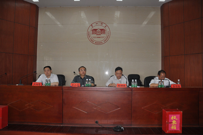 5月13日下午,我校党的群众路线教育实践活动征求意见情况民主测评大会在东方红校区视频会议室召开。省委第六督导组全体成员、全体校领导、全体处级干部、部分科级干部、高级专业技术职务人员代表、市级以上人大代表、政协委员、校内民主党派负责人、老同志代表等150多人参加了会议。督导组组长娄炳林、副组长廖明星,我校党委书记彭小奇、校长肖湘愚在主席台就坐。彭小奇主持了会议。