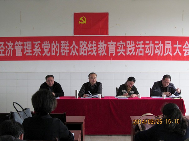 3月26日下午,经济管理系深入开展党的群众路线教育实践活动动员大会在实验楼C栋604室召开。校党委书记彭小奇、监察处副处长蒋莉、人事处干事王双利出席会议。经济管理系全体人员参加了大会。佘国强主持会议。