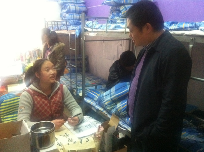 会后,肖湘愚在教育科学系党总支副书记蔡海军以及学工办工作人员的陪同下,走访学生公寓、澡堂、教室了解情况。当发现学生老公寓各种电线铺设存在安全隐患时,他当即指示有关部门尽快整改解决。学生的生活和学习情况肖校长牵挂在心,他走进寝室与大家亲切交谈,仔细询问大家“食堂伙食怎么样、澡堂洗澡贵不贵、平时学习压力大不大?”,当得知部分同学晚上睡得晚,导致白天精神不佳,他幽默地提醒大家晚上的“卧谈会”早点结束,早睡早起有利于身体健康。走访中,他还就“学生最希望学校解决的问题”和城南书院校区实行半封闭式管理征求同学们的意见。