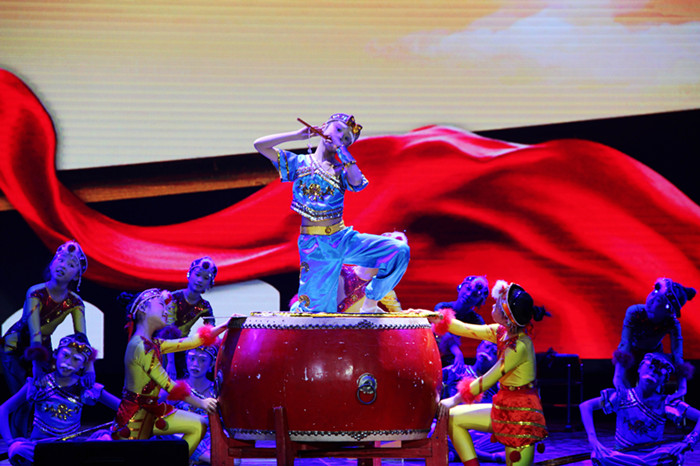 随后,由我校师生自编自导自演的文艺演出拉开序幕。音乐系的合唱《沁园春·长沙》和舞蹈《风华正茂》,再现了毛主席当年在一师学习时风华正茂、挥斥方遒的豪迈气概,也寄托了一师人对伟大领袖的深切怀念。一师附小的小朋友们为观众表演的管弦乐合奏《闪闪的红星》,向观众表达了青少年对革命精神的理解和传承。教科系以“最美乡村教师”吴金城为原型创作的情景剧《守望》,在这个寒冷的冬季带给了现场观众满满的感动与温暖。灵动的十指在黑白琴键上舞蹈,音乐系教师樊小欢演奏的钢琴曲《山丹丹花开红艳艳》将我们带回到陕北延安抗战时期的光辉岁月。在热烈地欢呼声中,体育系的啦啦操《舞动青春》彰显了当代大学生的青春活力。最后,在大型舞蹈《锦绣中华》欢乐、祝福的舞姿中,联欢会圆满落下了帷幕。