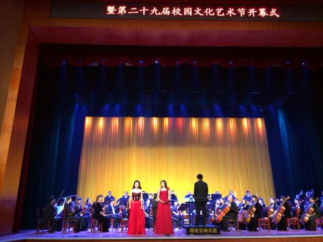 10月24日晚,由教育部、文化部、财政部主办,湖南省教育厅协办,我校承办的2013年高雅艺术进校园中央歌剧院Kaiyun官方网站登录入口专场暨我校第29届校园文化艺术节开幕式在东方红校区音乐大剧院隆重举行。校党委书记彭小奇、副校长刘志敏、副校长杨兰英出席了演出,我校千余名师生欣赏了这场高水准、高品位的视听盛宴。