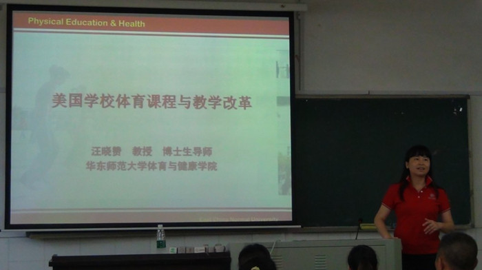 7月28日上午,华东师范大学体育学院院长、留美学者、博士生导师汪晓赞教授应邀来我校为“国培计划2013”小学体育骨干教师培训班作了题为《美国学校体育课程与教学改革》的专题讲座,我校体育学科首席专家、体育系主任黄依柱教授主持了讲座,体育学科全体国培学员与国培管理团队的教师们认真聆听了报告。