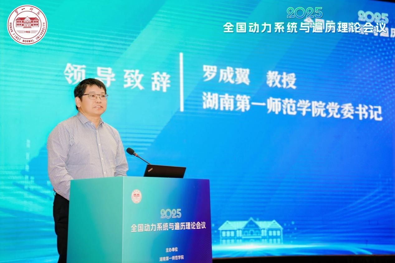 罗成翼介绍了我校数学与统计学院概况及其学科专业内涵建设特色亮点。他指出,数学作为基础科学的基石,被誉为“自然科学之母”。当今世界,数学实力已成为衡量国家科技竞争力的重要标尺。动力系统与遍历理论这一充满活力的数学分支,正在航空航天、人工智能、生物医药等前沿领域展现出强大的应用价值。他表示,我校将以此次会议为契机,广纳真知灼见,广聚学术资源,广交学术人才,做强数学学科,为建设教育强国、科技强国贡献数学人的智慧和力量!