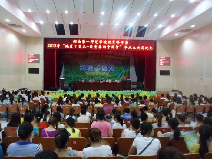 6月19日晚,教育科学系2013届毕业典礼暨欢送晚会在科技楼演播厅隆重举行。学生工作处处长何文、宣传部部长陈志武、团委书记任晓晴、教科系党总支书记张尚晏、副书记谭玉兰及全体专职辅导员老师、部分任课教师出席了此次典礼并观看了欢送晚会。