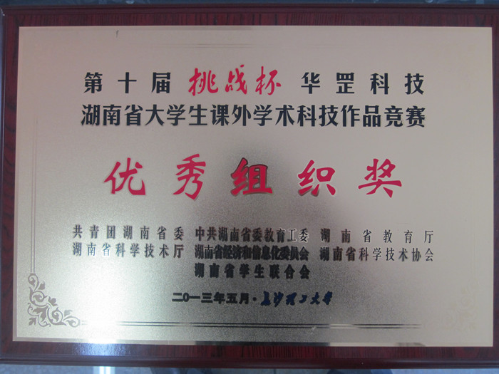 5月10日—12日,由团省委、省委教育工委、省教育厅、省经信委、省科技厅、省科协、省学联联合主办的第十届“挑战杯”华罡科技湖南省大学生课外学术科技作品竞赛终审决赛在长沙理工大学举行。校团委书记任晓晴和杜毅老师带领我校入围终审决赛的9个大学生团队参加了竞赛活动。