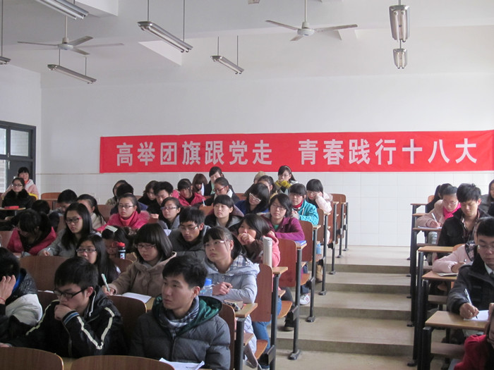 12月4日,院团委组织开展了“学习十八大”系列主题教育实践活动之学生干部、团员青年共话“十八大”座谈会。院团委书记任晓晴、副书记赵小群、杜毅老师及学生干部、团员青年代表100余人参加了座谈会。会议由杜毅主持。