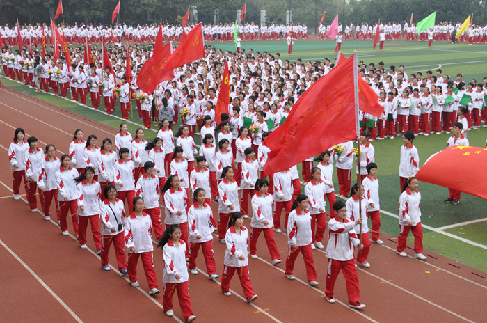 上午8时,伴随着嘹亮的运动员进行曲,庄严的国旗队首先进场,彩旗队、鲜花队紧随其后。来自我院城南书院校区60个班级的代表方队陆续步入会场,他们用特有的方式展示了自身的风采和面貌。