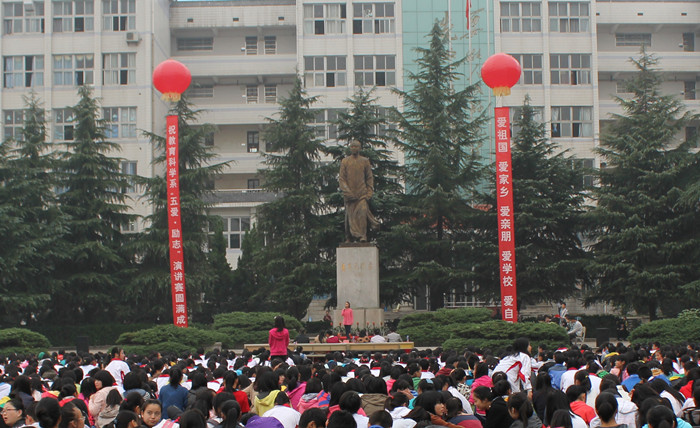 为了深入开展励志教育,表达师范生的爱国爱校情怀,喜迎党的“十八大”胜利召开,教育科学系城南书院校区开展了“五爱·励志”主题教育月活动,通过举行主题班会、演讲赛和观看电影展播等活动方式倡导学生“爱祖国、爱家乡、爱学校、爱亲朋、爱自己,励志成才”。作为“五爱·励志”主题教育月活动之一的演讲赛决赛,于10月28日下午在我院城南书院校区青年毛泽东铜像广场成功举行。教育科学系蒋蓉主任、蔡海军副书记、李晖旭、杨昭昭、李金国、刘洁、李程老师应邀出席比赛并担任评委,教育科学系辅导员与2000多名免费师范生观看了比赛。