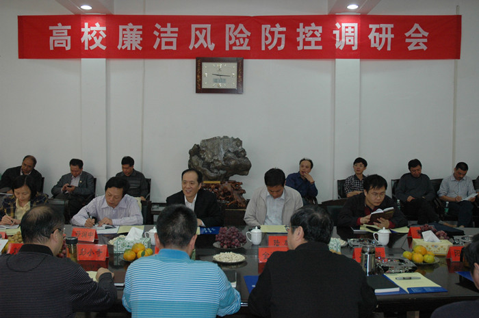 调研会上,院党委书记詹小平代表学院党委、行政向胡海鹰副局长一行就我院廉洁风险防控工作作了汇报。詹书记指出:近几年来,我院按照中纪委、省纪委、省教育纪工委关于反腐倡廉建设工作的总体部署,围绕中心,服务大局,坚持“标本兼治、综合治理、惩防并举、注重预防”的方针,认真落实党风廉政建设责任制,积极深入探索有效预防腐败的办法和措施,有力地推进了惩治和预防腐败体系建设。在具体的工作中,我们做到了:领导高度重视,形成了齐抓共管的反腐倡廉建设管理体系;注重宣传教育,努力筑牢了拒腐防变的思想防线;积极整章建制,全面构建了反腐倡廉建设的制度体系;加强监督管理,确保了反腐倡廉建设各项制度落实到位;切实关注民生,努力营造了廉洁和谐的校园人文环境。为此,我院党风廉政建设和反腐败工作多次获得上级表彰:被省纪委授予“2007年度全省纪检监察工作先进单位”,被省教育纪工委授予“全省教育系统纪检监察工作先进单位”、“执法监察工作奖”、“反腐倡廉宣传教育工作奖”等。