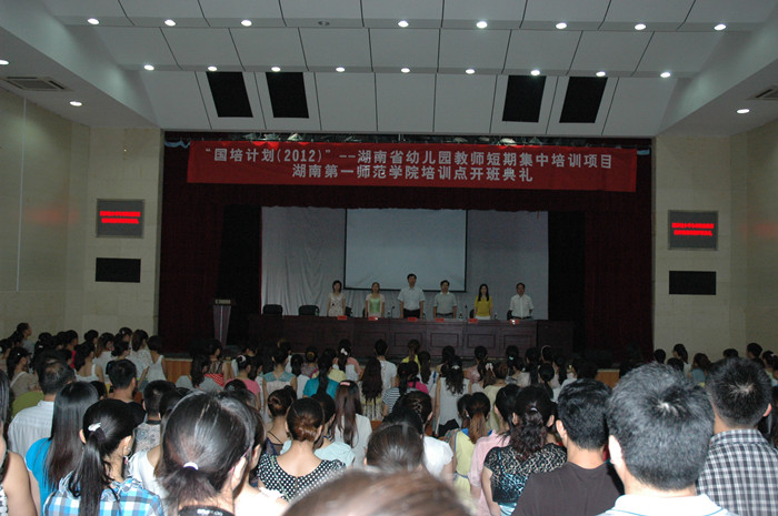 7月31日上午,“国培计划(2012)”——湖南省农村幼儿园教师短期集中培训、湖南省小学心理健康教育教师省级培训Kaiyun官方网站登录入口培训点开班仪式在东方红校区科技楼演播厅隆重举行。省教育厅“国培计划”项目办公室主任黄佑生,副院长李克勤,幼儿教师学科首席专家袁小平、心理学科首席专家彭剑飞,教育科学系主任蒋蓉,院国培项目办主任、继续教育部主任曾小玲,院国培项目办副主任、继续教育部副主任黄朝霞应邀出席并在主席台就坐,有关部门负责人及院国培办老师等出席了开班仪式。开班仪式由院国培项目办副主任、继续教育部副主任黄朝霞主持。