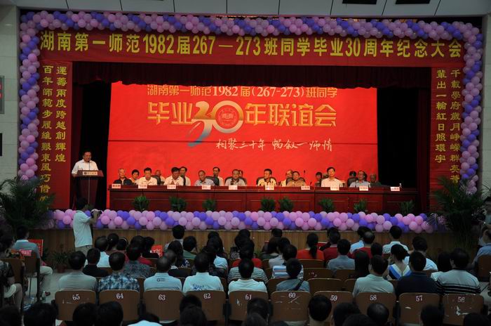 上午9时整,82届同学毕业30周年纪念大会在科技楼演播厅举行。院领导詹小平、彭小奇、李克勤,原全国政协委员王沛清,老领导胡华清、顾松麒、易志明、孙海林、张俊,省教育科学规划领导小组办公室常务副主任李倡平,本届同学的班主任、任课教师代表应邀出席纪念大会并在主席台就坐。