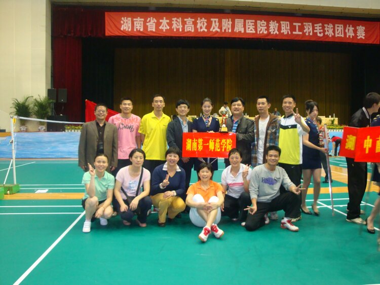 5月24-25日,湖南省本科高校及附属医院教职工羽毛球团体赛在长沙理工大学体育馆激烈上演。经过7场激烈的角逐,我院羽毛球代表队荣获第五名,这是我院参加全省高校各类球赛历史以来的最好成绩。湖南人文科技学院、长沙理工大学、湖南大学、中南大学等代表队依次获得前四名。