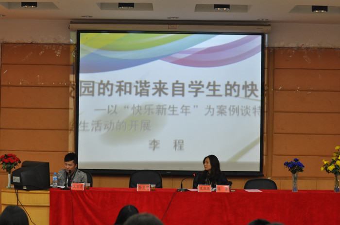 会上,教科系专兼职辅导员邓栩、李程、董晓娅、佘丽珍等12人结合自身工作经历分别从心理健康教育、班级活动创新、加强学生良好行为习惯养成教育、特殊学生教育经验、辅导员素质和工作艺术、教师精英学术团队建设、班级心理环境构建等方面作了经验汇报。关注心理健康教育、关心学生健康成长无疑是交流会上的热点话题,其中,邓栩、李程、谢丽红三位老师从班级活动开展的角度谈到学生心理幸福感和快乐的培养,佘丽珍、阳丽、赵小超老师从班级文化建设的角度告诉大家怎样构建良好的班级心理环境、培养学生的班级归属感,袁耀宗、陶陶老师则引用学生个案谈到她们用爱心与学生沟通,感化自卑留守生和问题学生的经验。