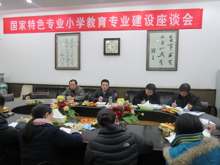 詹小平书记强调了座谈会的目的和意义:一是为提高“小学教育”专业人才培养质量,为申报即将启动的国家级“小学教师教育培养培训一体化基地”作准备,二是为接受教育部的检查、验收作准备,争取在高质量完成特色专业建设的基础上积极申报国家级教学成果奖。