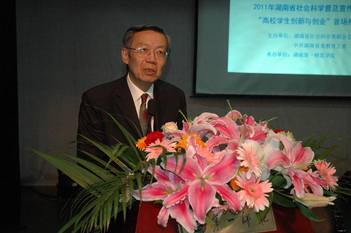 省委教育工委委员、省教育厅党组成员夏智伦宣布:2011年湖南省社会科学普及宣传活动“高校学生创新与创业”专题报告会开讲。