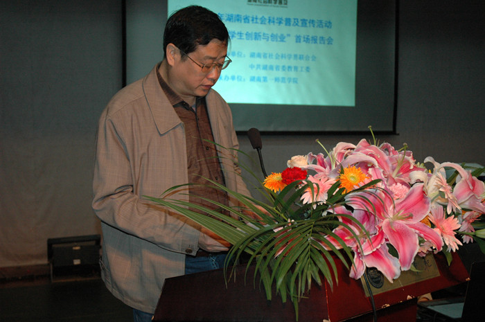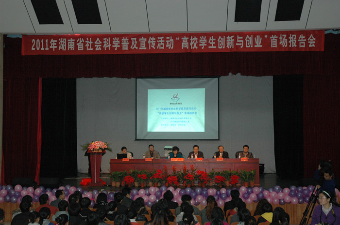 11月8日,由湖南省社会科学界联合会和中共湖南省委教育工委联合主办的2011年湖南省社会科学普及宣传活动“高校学生创新与创业”首场报告会在我院举行。省社科联党组成员、副主席黄建华主持报告会。