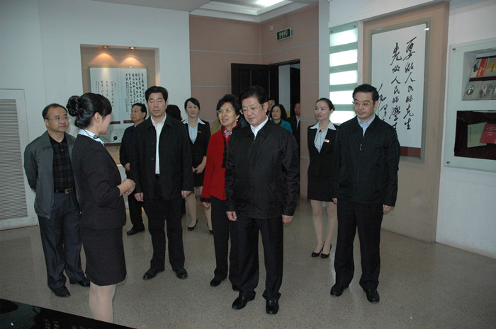 王兆国一行兴致勃勃地参观了我院城南书院校区青年毛泽东纪念馆。在参观过程中,王兆国认真听取讲解员的细致讲解,还不时询问我院的办学历史以及主席在一师求学时的有关情况。彭小奇院长向领导们汇报了我院举办师范教育的有关情况。彭院长说:在国家教育部和湖南省委省政府的大力支持和直接指导下,率先在全省乃至全国举办免费师范教育,为促进湖南基础教育的公平发展做出积极贡献。