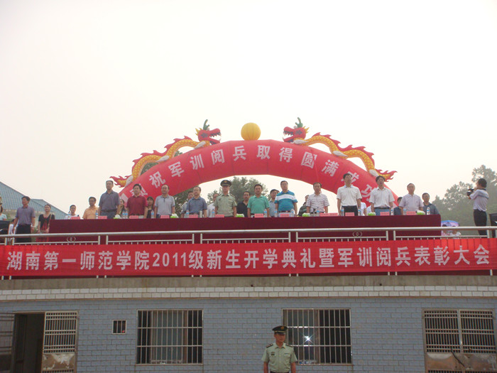 9月16日上午和9月17日上午,我院2011级新生开学典礼暨军训阅兵表彰大会分别在城南校区和东方红校区田径场隆重举行。武警湖南省总队直属支队部队首长徐四海、徐国水,院领导詹小平、彭小奇、金潇明、刘鸿翔、李克勤、阳柏苏、刘宇、朱道弘、田明德及相关部门负责人出席,大会由副院长刘志敏主持。