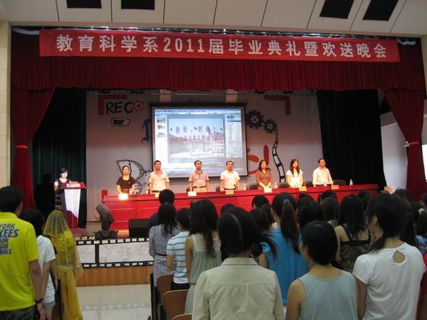 6月20日晚7点,我院教育科学系2011届毕业典礼暨欢送晚会在科技楼演播厅隆重举行。刘志敏副院长出席典礼并发表重要讲话,学院有关部门负责人应邀出席典礼并观看了毕业生欢送晚会。