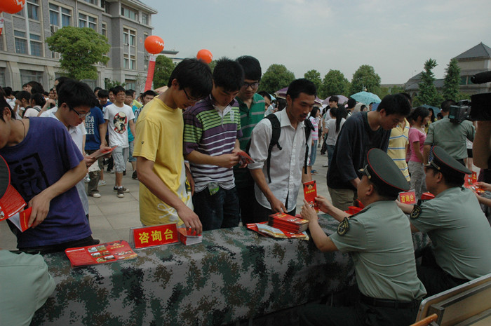 5月9日上午,湖南省2011年高校毕业生入伍预征宣传暨政策咨询活动启动仪式在我院东方红校区举行。省军区司令员张永大少将、副参谋长程佐胜、政治部主任胡鹏飞,省教育厅副巡视员陈飞跃,我院党委书记詹小平出席启动仪式。仪式由长沙市警备区司令员李田贵主持。