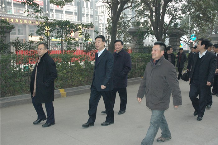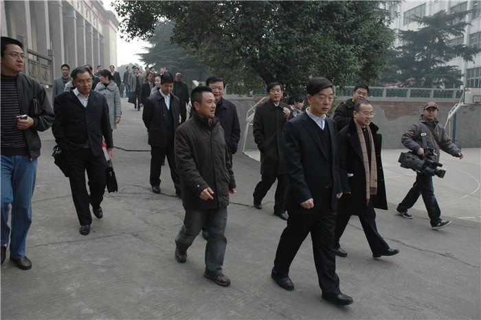 于来山一行来到我院城南书院校区后,兴致勃勃地登上了城南书院校区的至高点妙高峰,实地视察了君子亭、青年毛泽东铜像广场、火炬楼、体育馆、水井、八班教室、工人夜学等景点。在参观城南书院校区的过程中,于来山关切地叮嘱大家一定要在尊重历史的基础上抓紧修缮,恢复毛主席母校的原貌。在工人夜学的教室里,作为我院校友的于来山,如数家珍般地为大家详细介绍了一师的历史,饶有兴致地讲述了毛主席当年组织工人们办夜学、学知识的那段故事。
