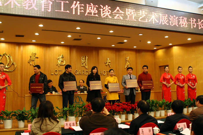 会上,王副厅长为去年荣获“全国学校艺术教育先进单位”的六所高校颁发了奖牌。我院作为“全国学校艺术教育先进单位”之一,由李茂平副处长代表学院上台领奖。
