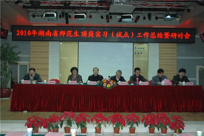 12月24日,由我院承办的2010年湖南省师范生顶岗实习(试点)工作总结暨研讨会在今朝宾馆召开。来自全省教育界的领导、专家济济一堂,共商全省小学教师教育发展大计,共同研讨全省师范生顶岗实习(试点)工作。