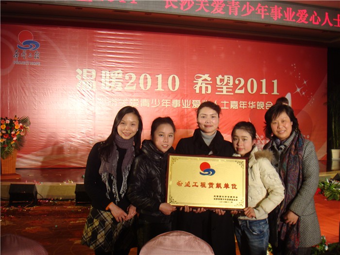 晚会上,长沙市青基会播放了2010年活动视屏,展示了众多捐赠活动中涌现出的先进典型的先进事迹,我院“润泽奖助学基金”项目得到重点推介。此项目旨在通过各种社会渠道筹集资金,资助我院贫困学子在校期间的学习生活,奖励我院优秀教师,或用于改善办学条件。晚会现场,我院为长沙市青少年基金会现场捐赠人民币拾万元整,被组委会评为长沙市“希望工程贡献单位奖”,这是省属高校中唯一获此殊荣的单位。