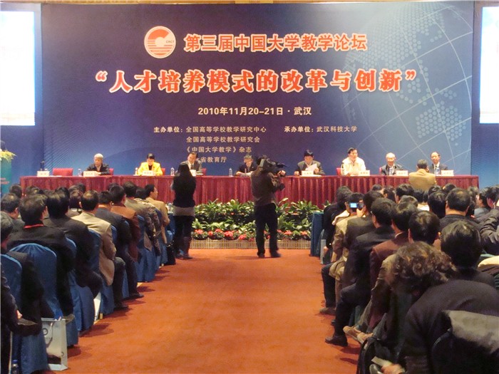 2010年11月19—21日,由全国高等学校教学研究中心、全国高等学校教学研究会、《中国大学教学》杂志社和湖北省教育厅共同主办,武汉科技大学承办的第三届“中国大学教学论坛”在武汉隆重举行。教育部高教司司长张大良,国务院参事、科技部原副部长刘燕华,全国高校教学研究会副理事长、西安交通大学校长、中国工程院院士郑南宁,华中科技大学校长、中国工程院院士李培根,华中科技大学原校长、中国科学院院士杨叔子,暨南大学原校长、中国工程院院士刘人怀,全国高校教学研究中心常务副主任杨祥,高等教育出版社李朋义,湖北省教育厅厅长陈安丽,以及来自全国近400所高校的800余名代表出席本届论坛,我院彭小奇院长、刘志敏副院长应邀出席。