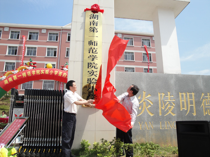 刘志敏副院长在致辞中说,湖南一师是有着“千年学府,百年师范”美誉的高等师范院校,是毛泽东等老一辈无产阶级革命家读书求学的地方,也是中国现代师范教育摇篮之一。与湖南一师有着同样光荣革命传统的炎陵县,是一块古老而又神奇的土地,中华民族的始祖炎帝神农氏就安寝在这里,这里联系着炎黄子孙的浓情血脉,是华夏儿女寻根谒祖的敬仰之地。与炎陵合作办学,在炎陵举办实验小学,有利于炎陵教育教学和管理水平的快速提升,有利于促进我省师范教育和基础教育的健康发展。