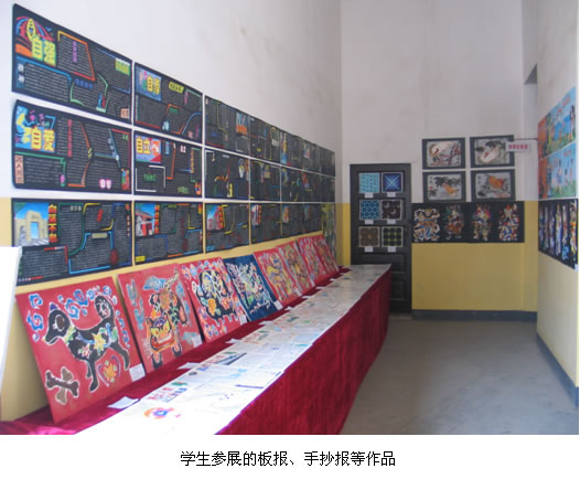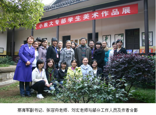 为了迎接2009年全国教师教育学会小学教师教育委员会年会在我院召开,同时配合我院团委组织的校园文化艺术节活动,小教大专部筹办的学生美术作品展于11月14日上午在青年毛泽东纪念馆八班寝室所在的四合院隆重开展, 300余幅作品摆满了四合院走廊。这些作品都是小教大专部学生用综合材料创作的,有芭比娃娃、刺绣、沥粉画、丝网花、剪纸、版画、板报、手抄报、民族服装设计等多种形式。校内外参观者赞不绝口,好评如潮。