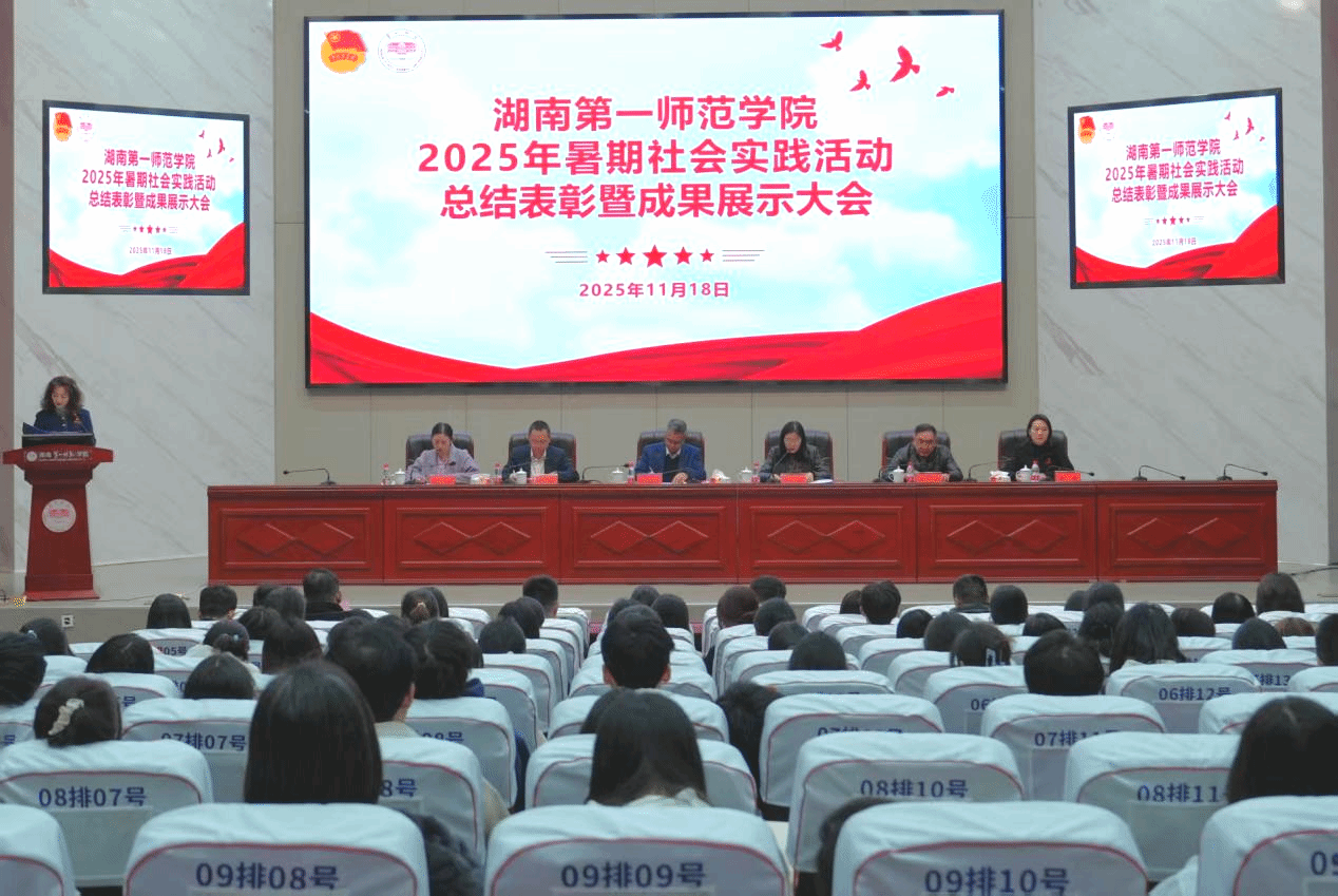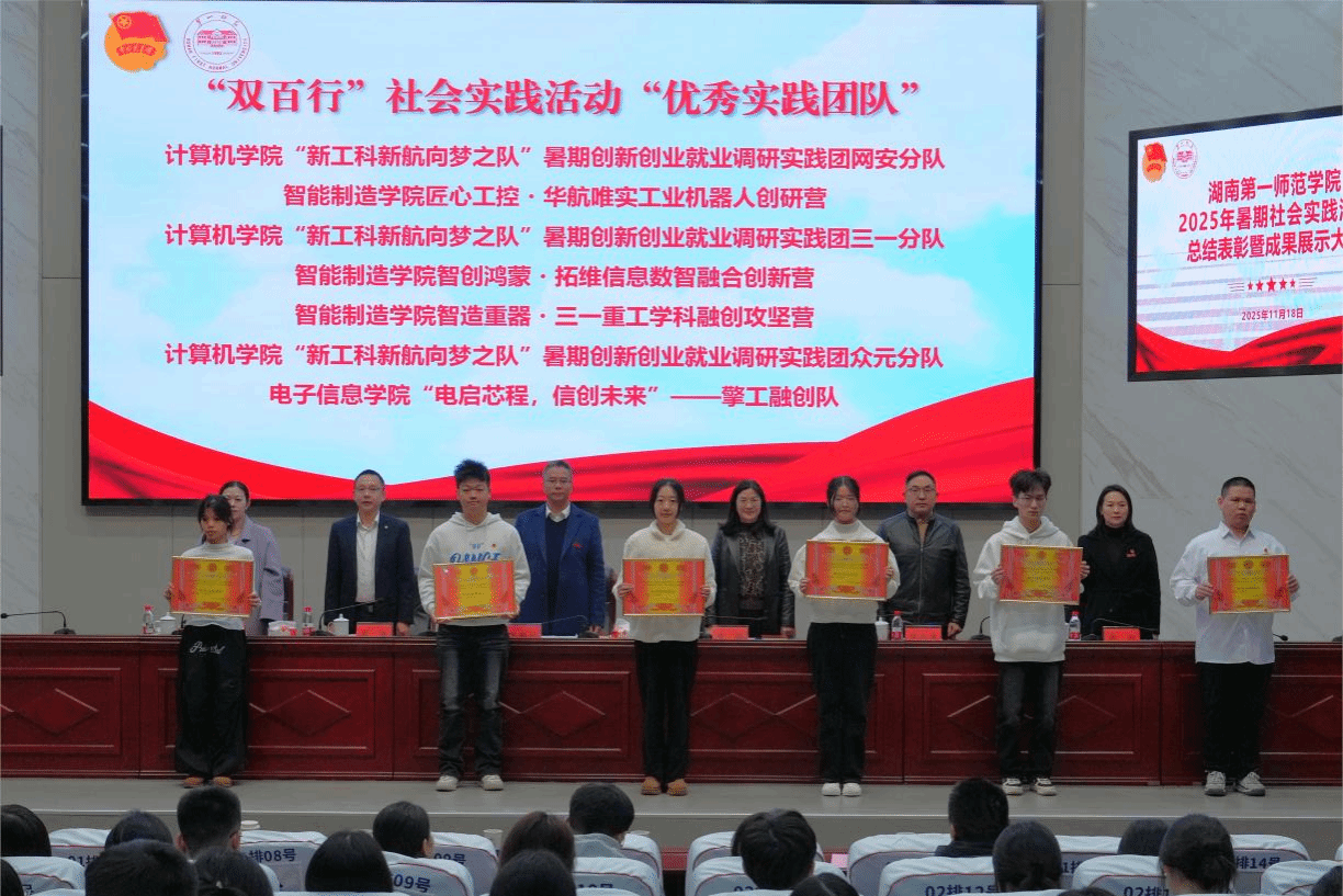 11月18日下午,我校2025年暑期社会实践活动总结表彰暨成果展示大会在东方红校区百熙楼228报告厅举行。校党委副书记、校长喻祖国,校党委委员、副校长蒋蓉出席会议。三一职院人事培训处副处长高峰应邀与会。学生工作部、教务处、校团委负责人,各二级学院党委副书记、分团委书记以及暑期社会实践师生代表参加会议。