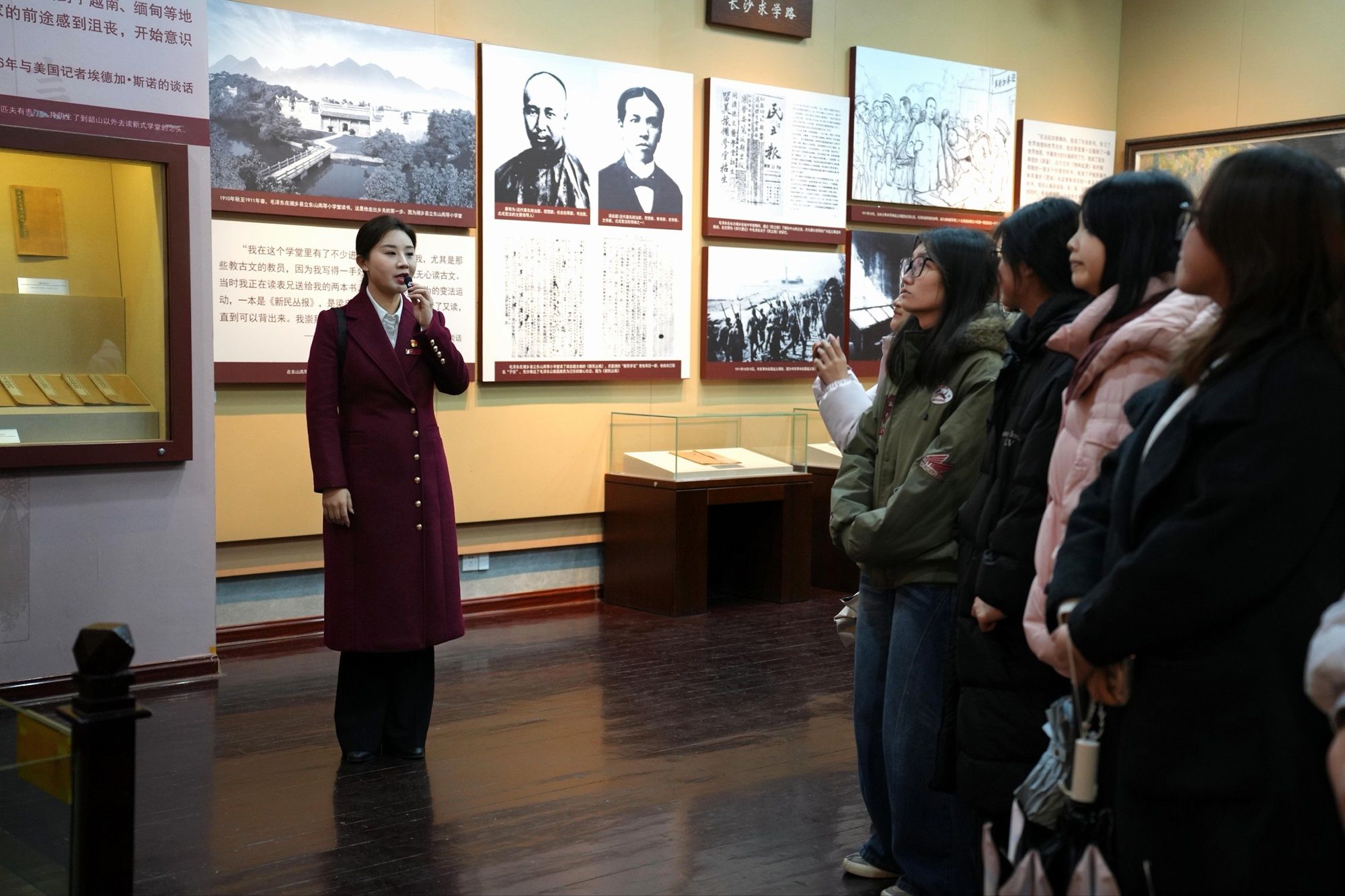 馆课一体课程教学改革,是学校深入贯彻落实习近平总书记考察学校重要讲话精神的具体实践。教学紧扣“大思政要抓好,红色资源要用好,‘第一师范’要办好”的殷切嘱托,深挖“千年学府、百年师范”的红色底蕴,将纪念馆红色资源与《中国近现代史纲要》课程深度融合,推动红色资源从“静态展陈”向“动态课堂”转变,将红色基因融入人才培养全过程,引导青年学子厚植家国情怀、坚定理想信念,努力成长为堪当民族复兴大任的时代新人。