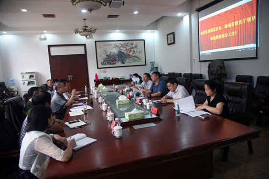 8月12日上午, 国家汉办(国家汉语国际推广领导小组办公室)党委书记马箭飞、发展规划处处长曹叠峰、综合处副处长袁丽一行3人来我校调研。湖南省教育厅党组书记、厅长肖国安、厅党组成员、副厅长陈飞跃、国际交流处处长王红冰陪同调研。我校党委书记彭小奇、党委副书记刘志敏、副校长江正云接待了马箭飞一行。