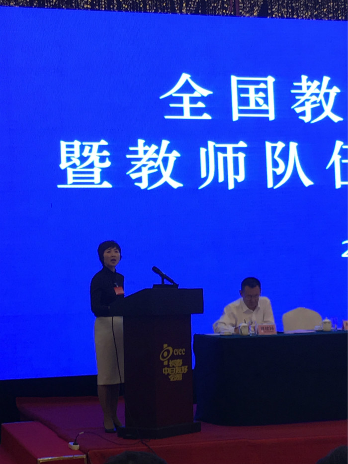 8月25日,由教育部主办的教师教育振兴暨教师队伍建设工作会议在吉林省长春市召开。会议旨在深入学习贯彻习近平总书记系列重要讲话和关于黄大年同志先进事迹的重要批示精神,交流各地各校教师培养培训的典型经验和先进做法,部署推进教师教育改革发展和教师队伍建设工作。教育部党组成员、副部长孙尧出席会议并讲话。各省(区、市)教育厅、教委负责人、各卓越教师培养计划改革项目实施高校负责人以及教育部相关机构负责人等近200人参加会议。我校校长童小娇作为全国地方师范院校的唯一代表在会上作典型发言。