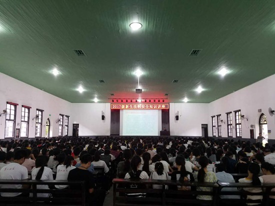 法制安全知识讲座是我校新老生安全教育中的传统项目,每年新生入学教育期间都组织学生参加法制安全知识讲座。9月12日、17日下午,保卫处、学工处、麓谷派出所、书院路派出所共同主办了新生法制安全知识、消防安全知识宣传教育活动。